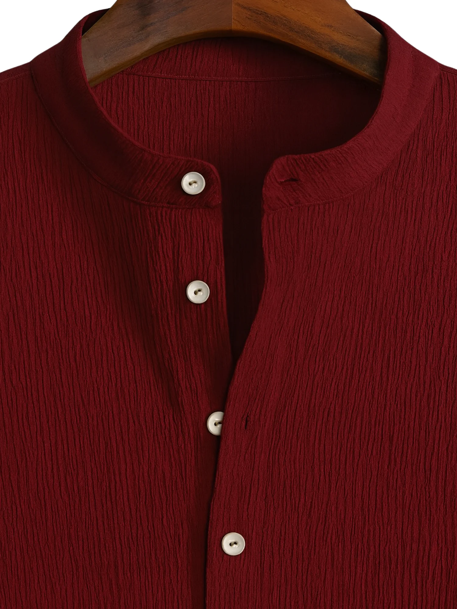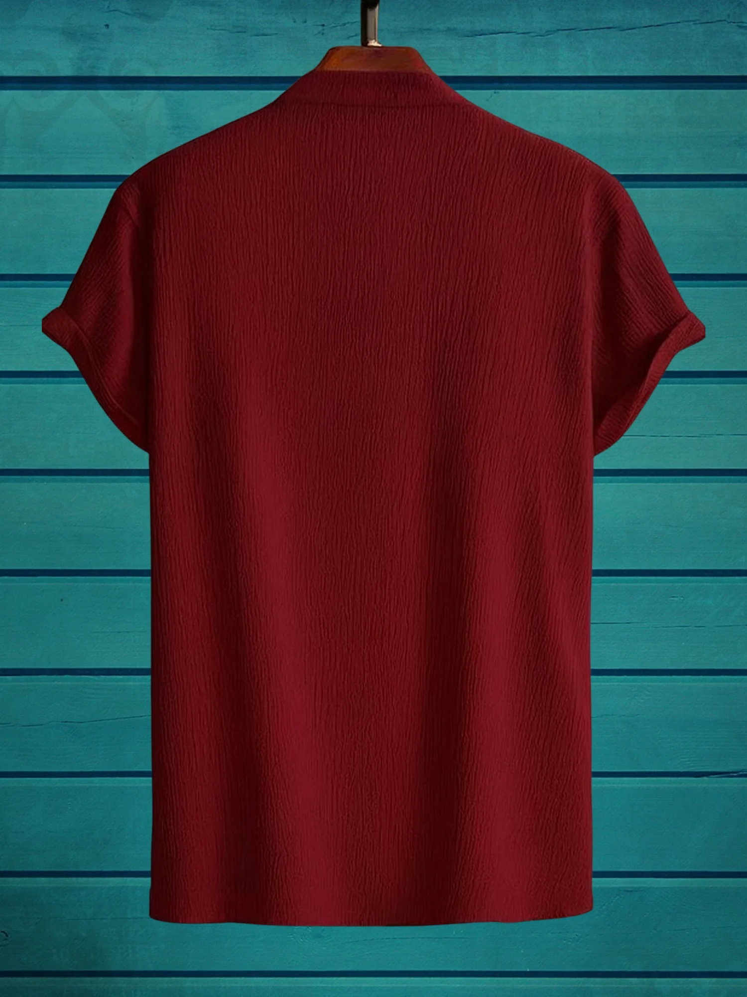 Make a bold yet effortless style statement with this Men’s Maroon Cotton-Linen Casual Shirt. Tailored from a textured, breathable fabric, this half placket shirt comes with short sleeves and a relaxed fit. Whether you’re heading to a brunch, date, or beach getaway, this shirt brings a blend of comfort and class to your wardrobe.