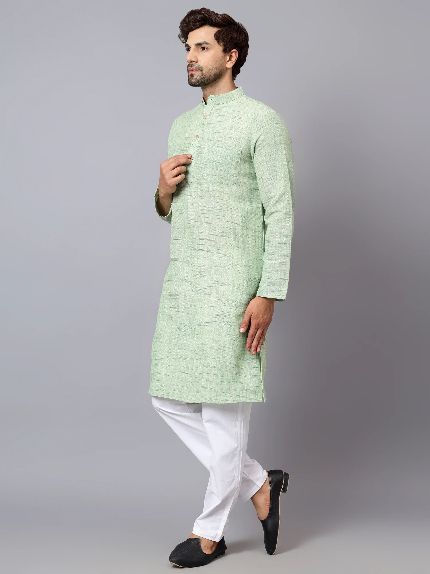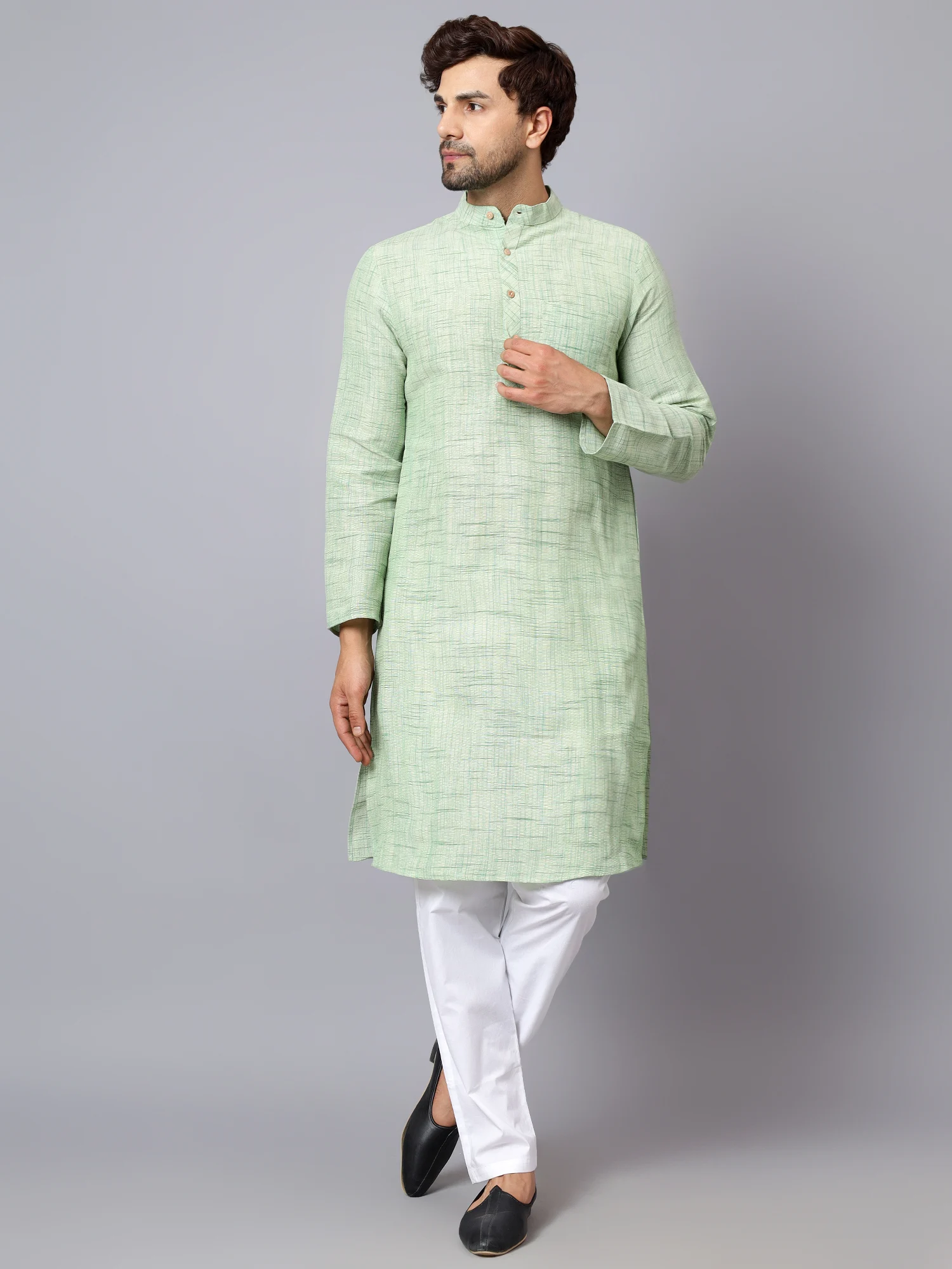 Redefine your ethnic wear with this elegant Green cotton kurta featuring a minimalistic checkered pattern. Made from lightweight, breathable cotton fabric, this kurta is perfect for everyday ethnic wear, casual outings, or festive occasions. The subtle print adds a modern twist to a traditional silhouette.