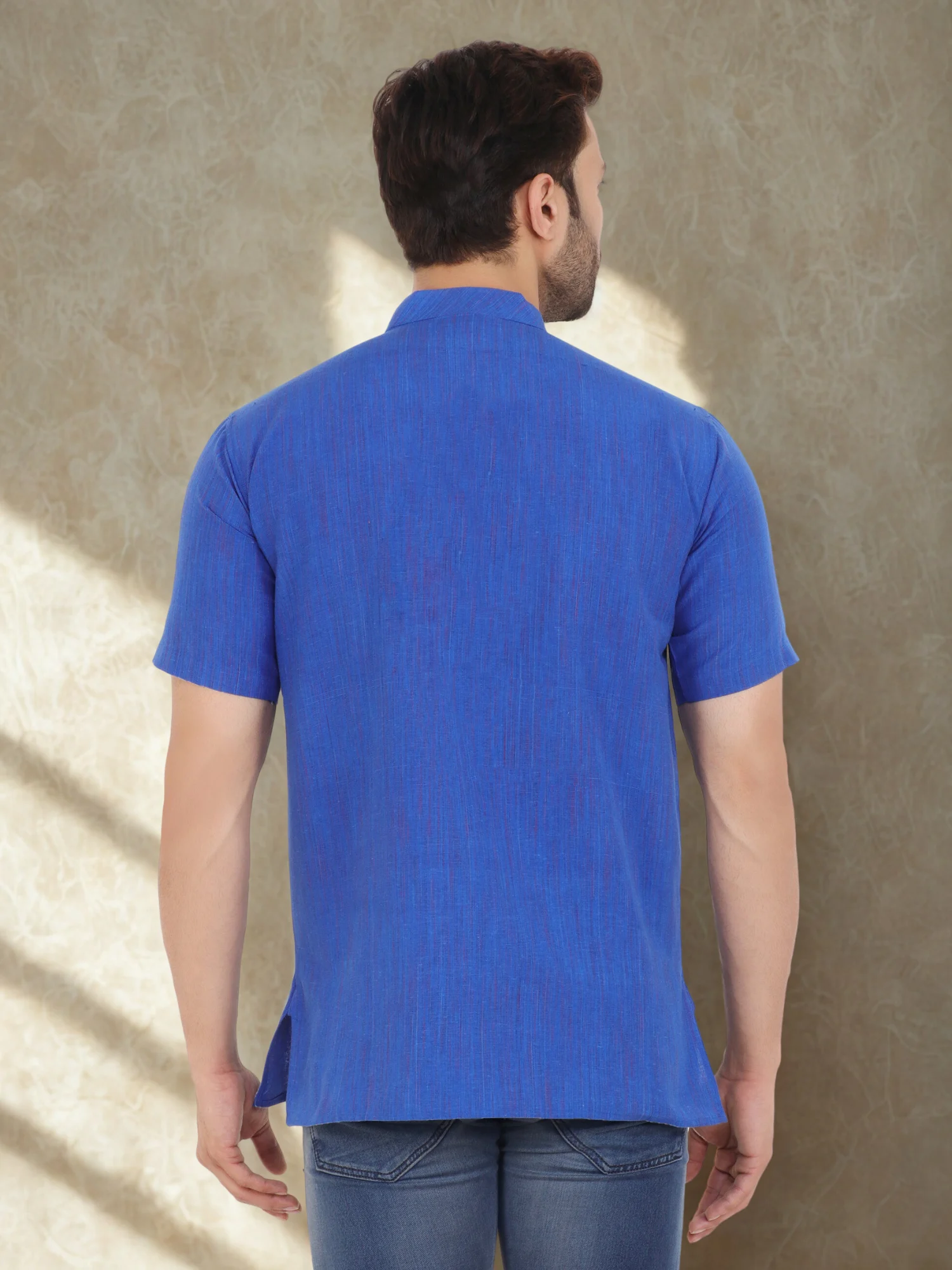 Refresh your ethnic wardrobe with this vibrant Royal Blue Textured Cotton Short Kurta – an ideal blend of traditional design and everyday functionality. Crafted from lightweight, breathable cotton, this kurta offers superior comfort, making it perfect for long wear during casual outings, office ethnic days, and festive gatherings.