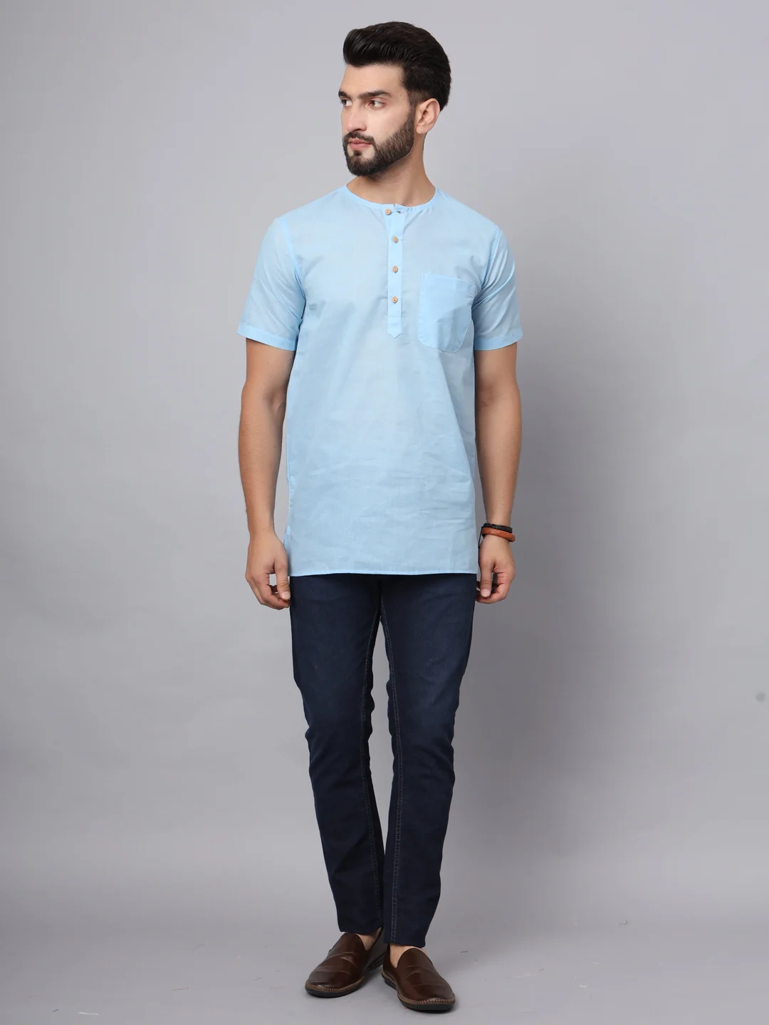 Elevate your casual ethnic style with this Men’s Firozi Short Kurta, designed for comfort and effortless charm. Tailored from breathable cotton fabric, it features a mandarin collar, wooden-style buttons, and a functional front pocket. Whether you’re heading to a casual event, work-from-home setup, or festive gathering, this kurta adds a relaxed and refined touch to your look.