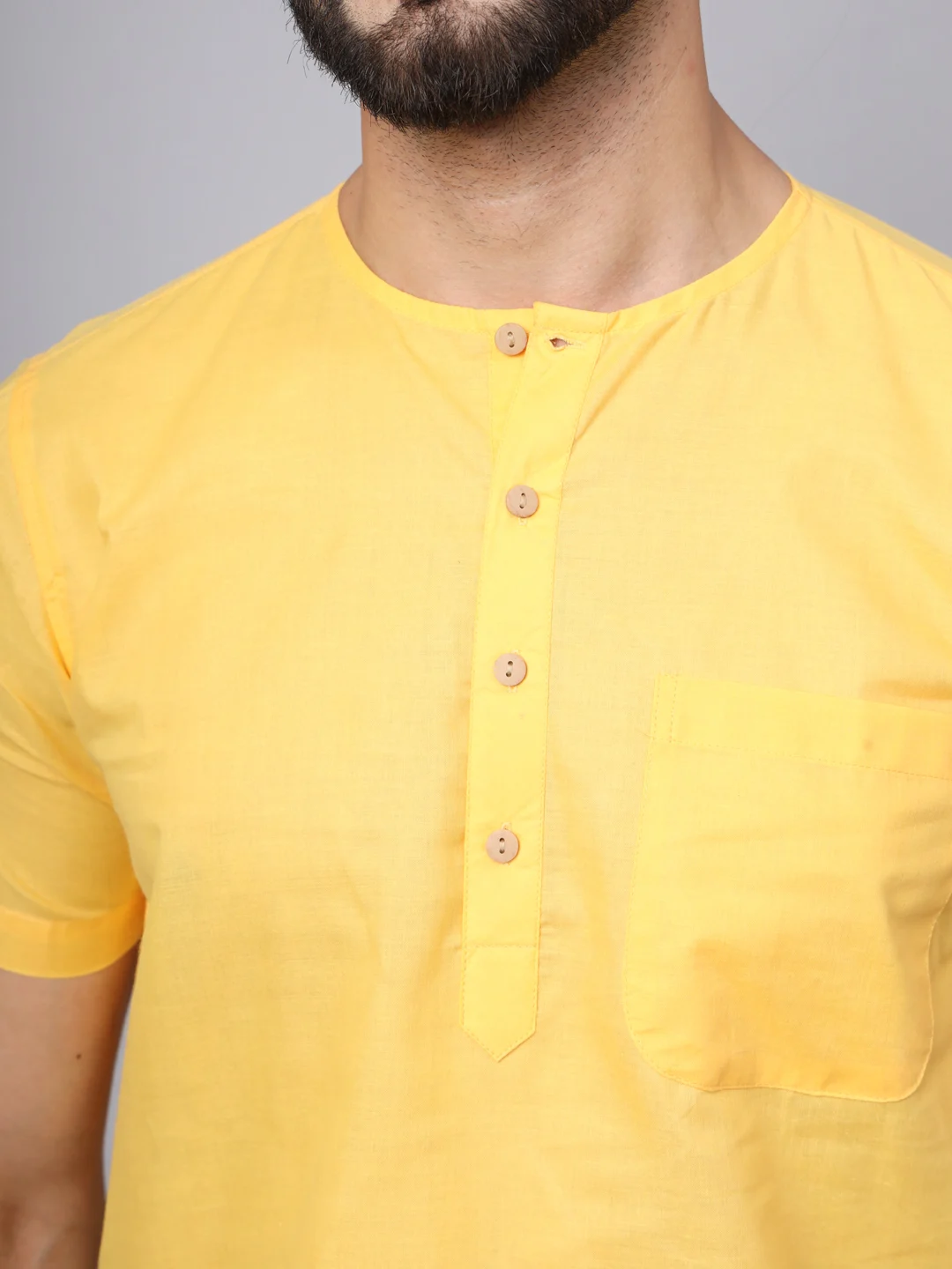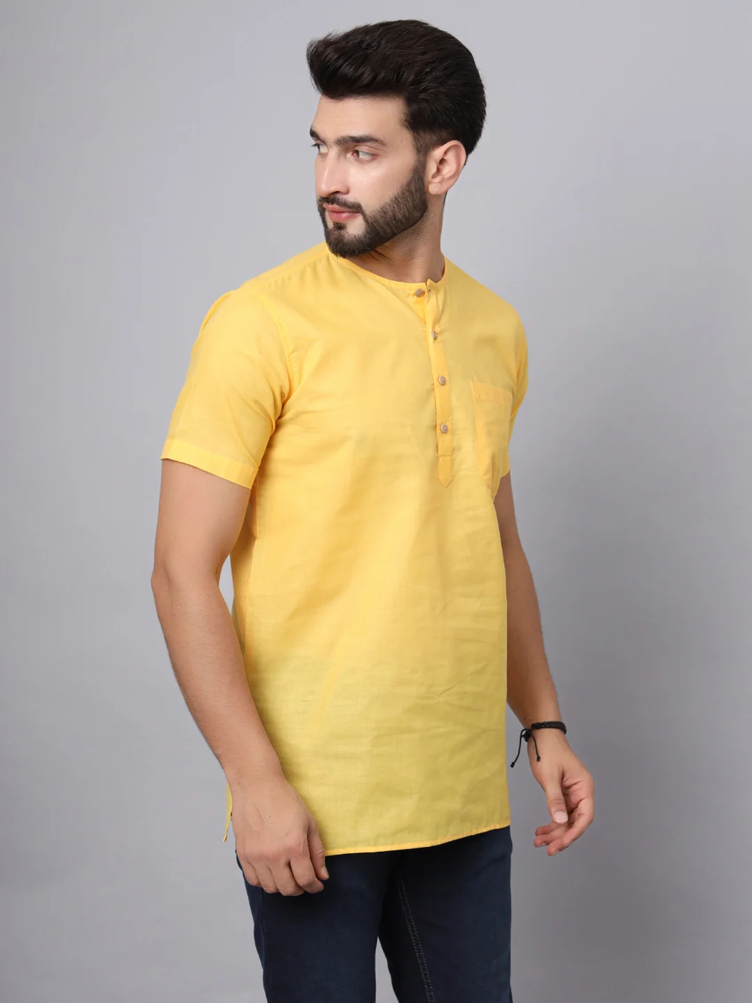 Brighten up your wardrobe with this Men’s Bright Yellow Short Kurta, designed for both comfort and bold style. Made from breathable cotton, it features a classic mandarin collar, half-button placket, and a chest pocket — perfect for casual outings, festive gatherings, or summer evenings. Lightweight and eye-catching, this kurta is your go-to for effortless ethnic flair with a modern touch.