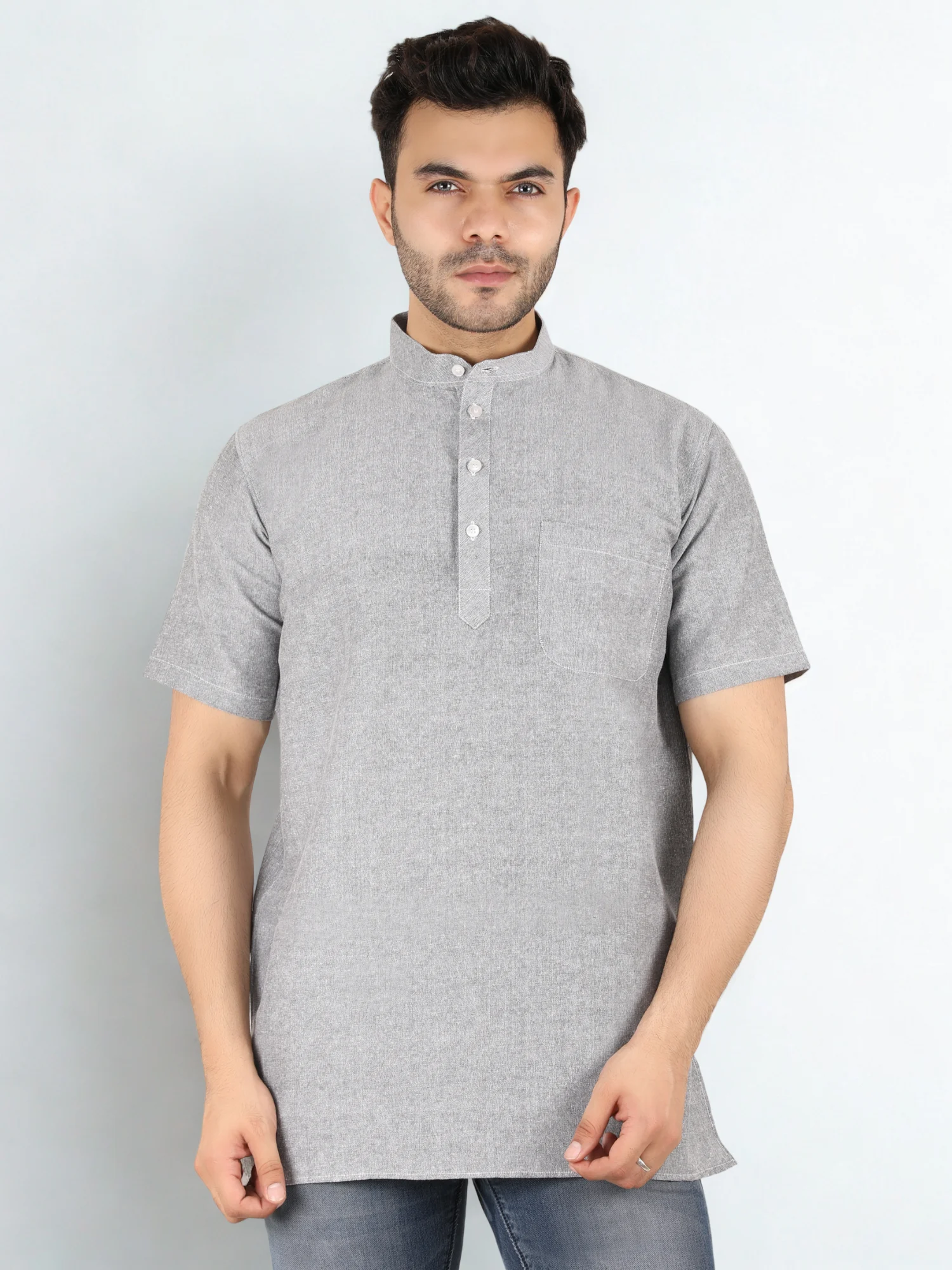dd a touch of classic simplicity to your wardrobe with this Men’s Solid Grey Cotton Kurta, tailored for everyday elegance and cultural sophistication. Crafted from premium-grade cotton fabric, this short-sleeve kurta offers maximum comfort, breathability, and a soft hand feel—making it an excellent choice for year-round wear.