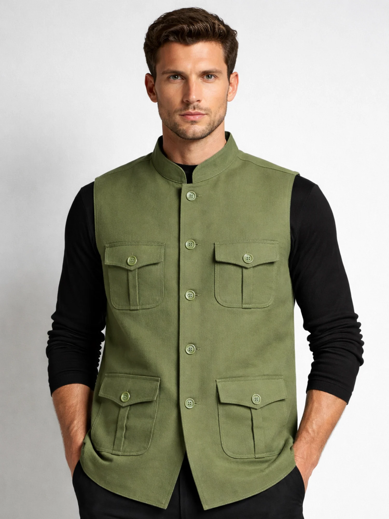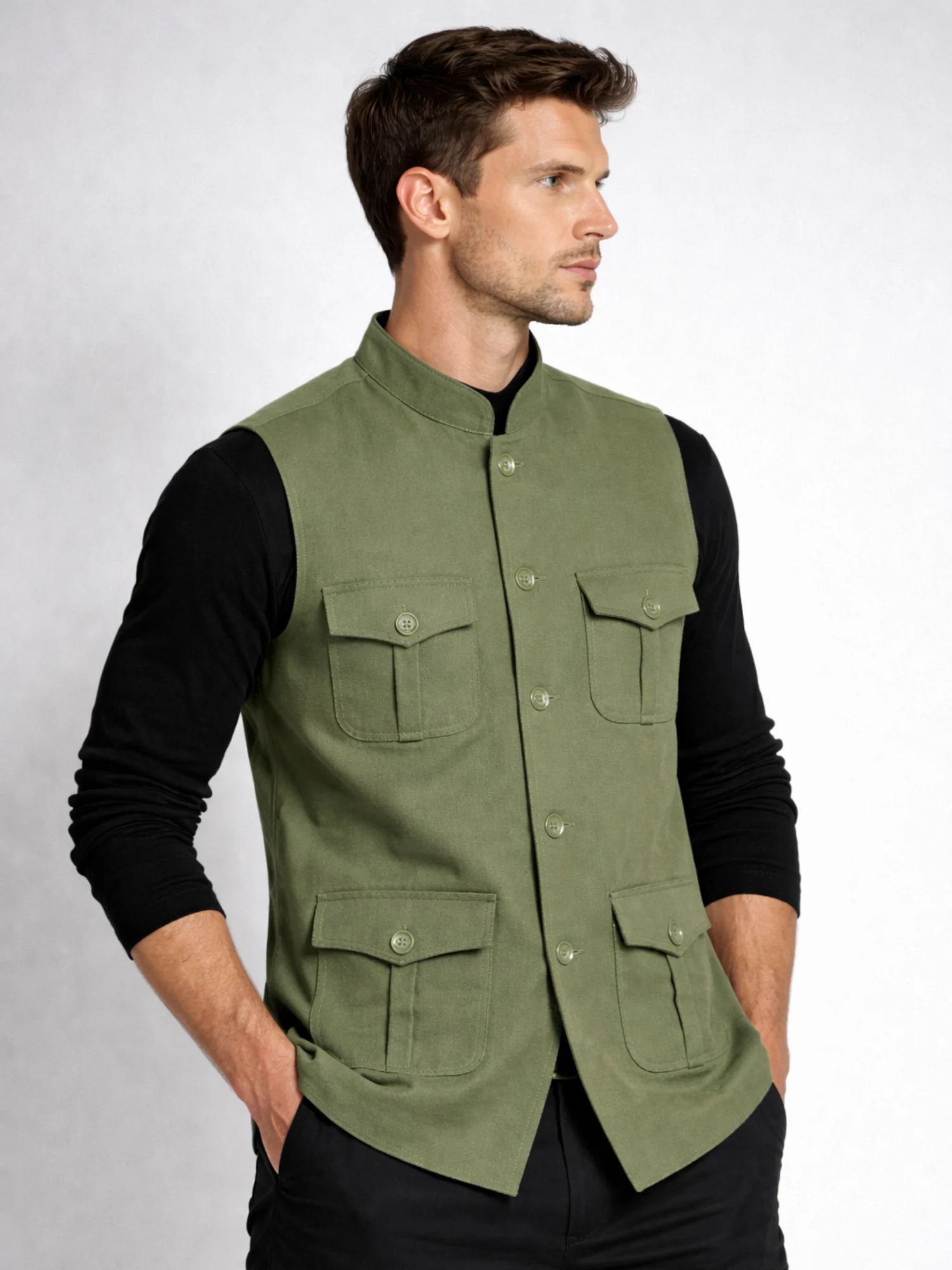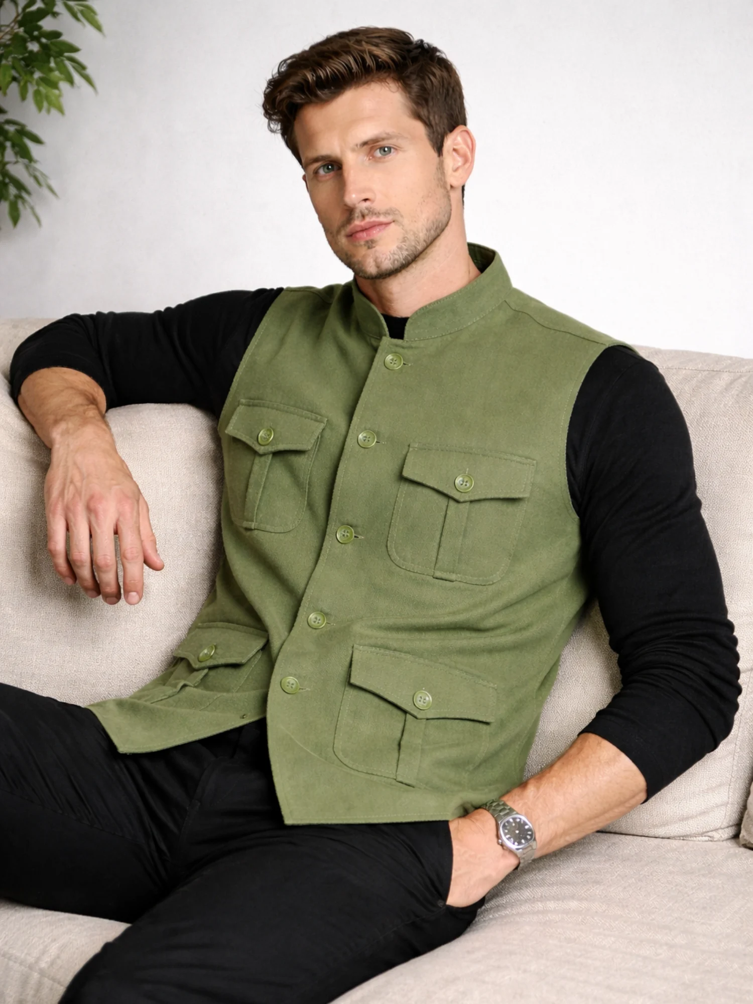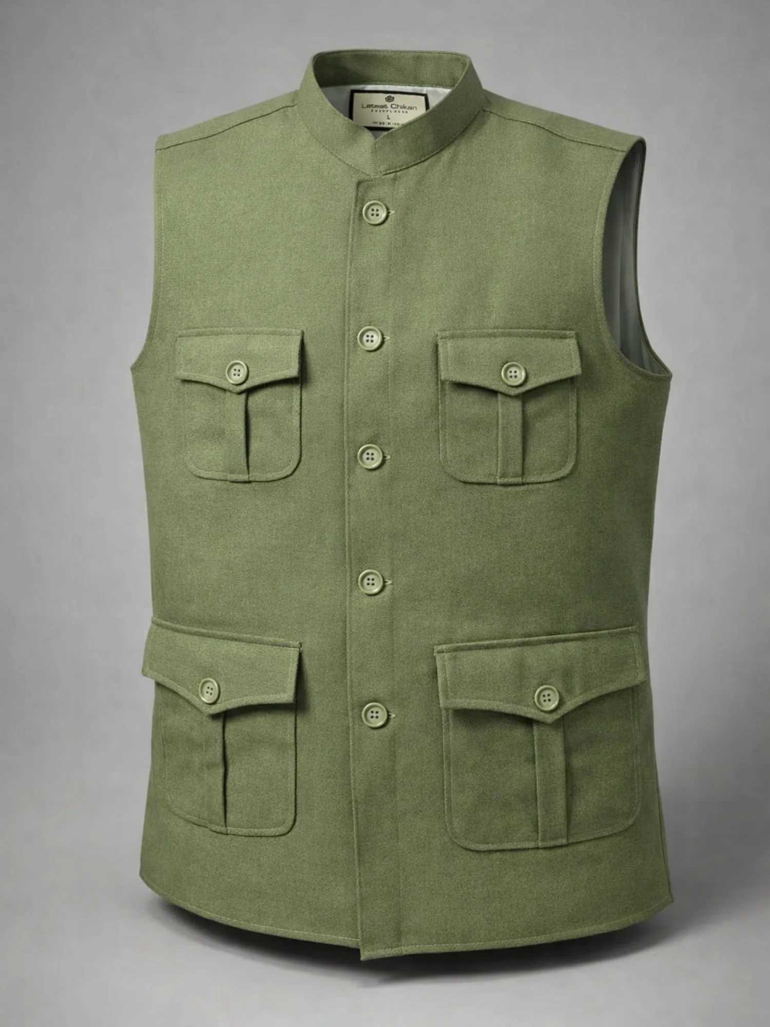 • 👔 Elegant beige Nehru-style vest with a structured fit