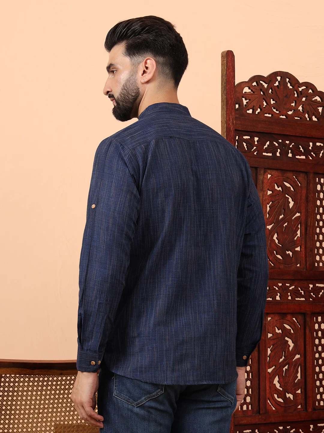 Elevate your ethnic style with the Hazim Men’s Royal Blue Cotton Khadi Kurta. Crafted from breathable, premium-quality khadi cotton, this kurta features a timeless mandarin collar, wooden button detailing, and a subtle checkered weave pattern that adds sophistication. Perfect for casual outings, festive occasions, or daily wear, this versatile piece offers a blend of traditional charm and modern comfort.